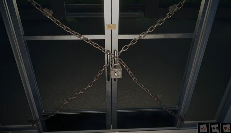 跟着任务找到卡片后来到保安室,输入密码获得大门钥匙
