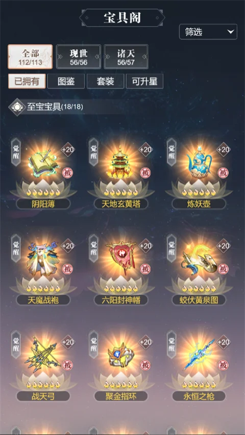每个被动宝具拥有一种基础属性和一种被动效果,升级宝具会提升宝具的基础属性,宝具升星则会提升宝具的被动效果。