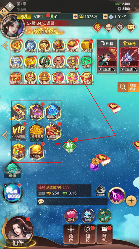 1、游戏以挂机修仙为主,自动战斗,玩家可以通过完成主线任务和副本,可以获得经验和装备,提升角色的等级和战斗,解锁更多有趣玩法,游戏内的一些系统需要通过关卡来解锁,所以玩家还是需要手动闯关的哦!