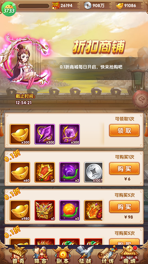 4、折扣商品,0.1折商场每日开启,玩家可以尽情抢购。