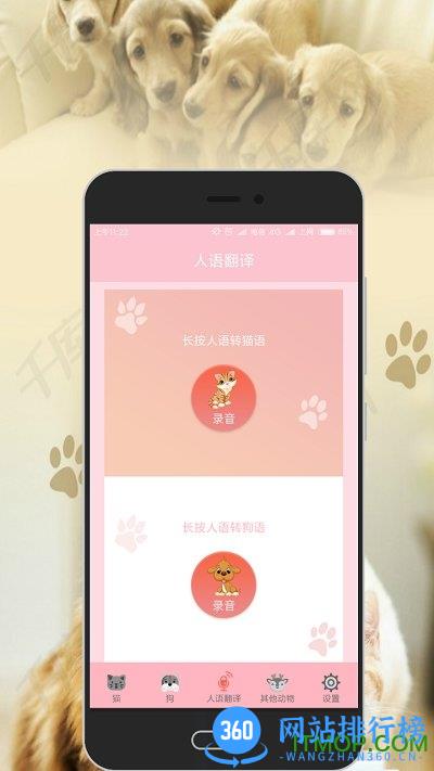 当你家的小狗出现烦燥不安或不听话时,你是不是特想知道它想干什么?用狗语翻译机app吧,把狗的叫声录下来,用软件自动进行分析处理,你就能明白狗狗要说什么了,了解它,和它成为超级好朋友。